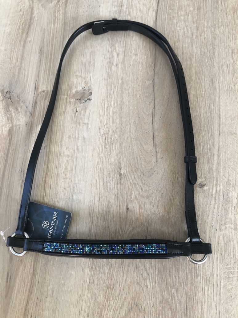 weich unterlegtes hann. Reithalfter mit funkelnden blauen u. türkisen Steinen